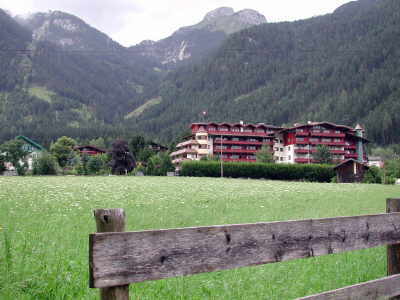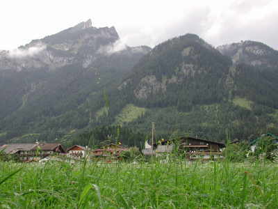 Nachdem die letzten Maßnahmen getroffen sind, das Haus „urlaubsfertig“ zu machen, also Sicherungen ausschalten, Elektrogeräte vom Netz nehmen, Wasserhähne zudrehen, Blumen umgruppieren, kommt auch schon mein Vater und ist erst einmal erschrocken über die Anzahl unserer Gepäckstücke. Er befürchtet bereits, dass sein Koffer nicht mehr ins Auto passt. Aber auch dieses Problem wurde unter Einbeziehung eines Teils der Rückbank gelöst. Pünktlich um 8:00 Uhr geht es dann los. Die ersten 200 km laufen ganz gut. Irgendwann setzt dann starker Regen ein und kurz vor der Abzweigung auf die A99 kommt es dann auch noch zu einem kleinen Stau. Bei Haar verlassen wir dann, ebenfalls in der Tradition unserer Achensee-Urlaube, die Autobahn. Johannas Cousine Cornelia und ihr Mann Toni wohnen zwar inzwischen nicht mehr in Baldham, sondern noch ein paar Kilometer weiter in Moosach. Aber das hinderte uns natürlich nicht, uns zum Weißwurst-Frühstück einzuladen. Gegen 11:30 Uhr treffen wir dann am Haus der beiden ein. Aus dem Frühstück auf der Terrasse wird leider nichts, weil es immer noch mehr oder weniger regnet, aber die Weißwürste schmecken auch im Wohnzimmer. Während sich Johanna und mein Vater natürlich auch ein (Weiß-)Bier zu den Weißwürsten genehmigen, muss ich mir das als Fahrer leider erst einmal verkneifen. Die beiden haben inzwischen einen Schäferhund in Dauerpension. Der Hund ist schon etwas älter und völlig zutraulich. Wenn er mal minutenlang auf sein Herrchen hören muß und auf die Terrasse ausgesperrt wird, sitzt er auf den Hinterläufen vor der Tür und schaut mit seinem trau-doofen Blick so lange ins Wohnzimmer, bis wieder jemand die Tür aufmacht. Zwei Stunden später, nachdem auch die neusten Neuigkeiten beruflicher und familiärer Natur ausgetauscht sind, brechen wir wieder auf. Wir versprechen, uns auf der Rückfahrt noch mal zu melden. Wir verzichten darauf, zur Autobahn zurück zu fahren, sondern nehmen den Weg quer über das Land direkt Richtung Tegernsee. Der Sturm in der Nach zuvor hat deutliche Schäden hinterlassen. Überall liegen abgebrochene Äste, auch ziemlich große, neben der Straße. Die Straße selbst ist teilweise noch mit einer Mischung aus abgerissenen Blättern und Erde bedeckt. Eine Weile später stoßen wir dann wieder auf die Straße, die von der Autobahnausfahrt Richtung Süden, Richtung Tegernsee und Achensee führt. Wir entscheiden uns dieses Mal den Weg östlich um den Tegernsee zu nehmen, da wir das letzte Mal die Westroute benutzt haben. Man kommt zwar auf der Ostroute durch die ganzen netten Ortschaften entlang des Sees. Allerdings hält das auch einigermaßen auf. Das Wetter ist mittlerweile durchwachsen, aber es regnet zumindest nicht mehr. Schließlich treffen wir in Maurach bei der Alpenrose ein, wo wir uns zunächst den Empfangssekt genehmigen, um dann unsere Zimmer zu inspizieren. Sowohl mein Vater als auch wir sind im ersten Stock mit Blick auf das Karwendelgebirge untergebracht.