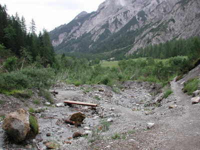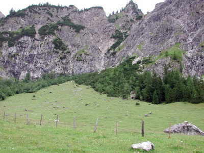 Jausestationen. Hinter der Alm steigt das Tal dann stärker an. Man könnte