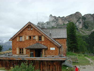 Bei unserer Ankunft ist es 18:30 Uhr, was eine reine Wanderzeit von fünf Stunden macht. Es bleibt gerade noch Zeit für eine Dusche, dann gehen wir erst einmal zur Bar und dann zum Abendessen (Mit Rucola gefülltes Kaninchen auf Steinpilzen für meinen Vater und mich, gebratene Lammkeule für Johanna).