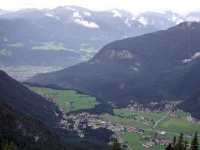 Nach einer weiteren Stunde erreichen wir schließlich die Astenau Alpe. Die liegt fast oberhalb der Kanzelkehre und man hat daher einen sehr guten Blick auf Jenbach und das Inntal einerseits und das Zillertal andererseits.