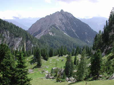 Von hier aus sieht man auch den Weg über den Hubersteig zur Astenau Alpe. Dazu hätte man auf etwas 2/3 der Höhe des Berges aufsteigen müssen. Allein schon aus Zeitgründen hätten wir das nicht geschafft.