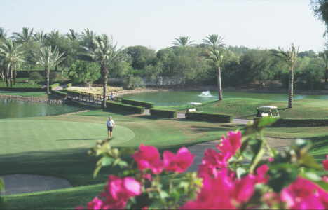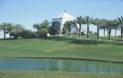 Clubhäuser Eine halbe Stunde lang geht es kreuz und quer über den Majlis und den Wadi-Kurs, die sonstigen Sportanlagen, die Bahnen der Golfakademie. Ich bekomme die Fische im Teich gezeigt und erhalte jede Menge Informationen über Club und Platz.