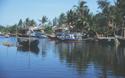 Gleich hinter der Brücke schauen wir uns eines der alten Häuser, das Phung Hung-Haus an. Zwei Generationen der Eigentümerfamilie leben hier noch. Natürlich werden auch in diesem Haus verschiedene Waren für Touristen angeboten. Der Weg zurück führt uns am Fluss und am Hafen entlang, was eine Fülle an Fotomotiven ergibt.