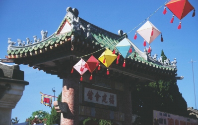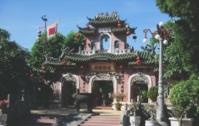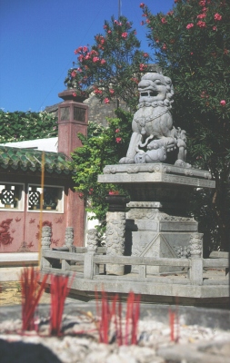 Wieder hinein in die Innenstadt beobachten wir eine größere Schülergruppe, die mit Reisigbesen bewaffnet auf dem Weg zu einem Reinigungseinsatz sind. Eine der Versammlungshallen der Chinesen, in diesem Fall die Versammlungshalle der Chinesen aus Fujian (Hoi Quan Phuc Kien) steht ebenfalls auf unserem Programm. Die Versammlungshalle ist Thien Hau, der Schutzgöttin der Seefahrer gewidmet.