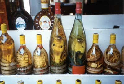 Den Schießstand auf dem Gelände, auf dem Touristen für 1$/Schuss mit Originalwaffen schießen können lassen wir natürlich aus. Unsere Reiseleiterin meint auch, dass sie gegen den Schießstand sei. Beim vorerst letzten Unterstand angekommen setze ich mich erst einmal ab, um eine Befreiungshalle aufzusuchen. Zum Glück finde ich eine, die halbwegs benutzbar ist. Ebenfalls zum Glück bleibt dies ein einmaliges Ereignis, im Gegensatz zu meinem Husten. Am Souvenirstand gibt es mal wieder Schlangenschnaps zu kaufen, den wir zwar anschauen, aber weder probieren noch kaufen wollen.