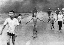 Auf dem Weg nach Tay Ninh kommen wir auch an Trang Bang vorbei. In diesem Ort wurde das berühmte Foto aufgenommen, auf dem ein Mädchen mit brennendem Napalm auf der Haut aus dem Ort flüchtet.