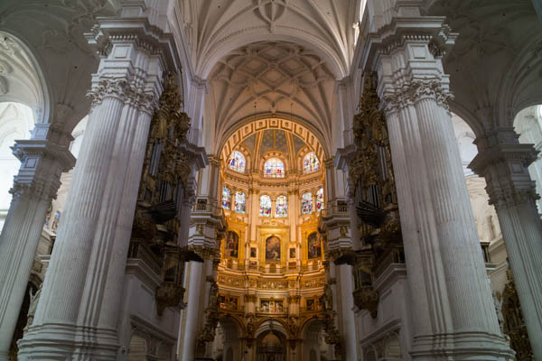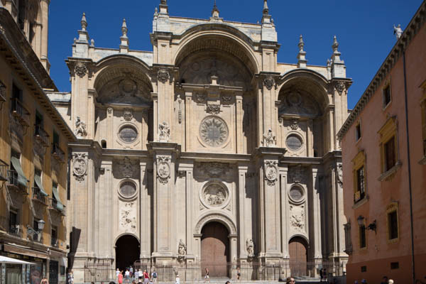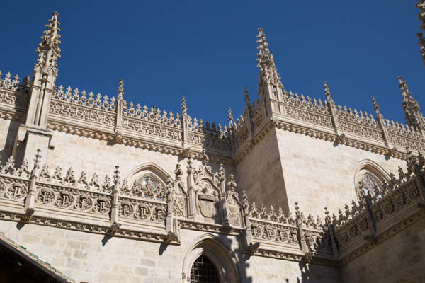 Unser Spaziergang führte über die ehemalige Karawanserei (Corral del Carbón)durch die Gassen zur Capilla Real. Dort durfte man nicht fotografieren und irgendwie hatte das mit dem lokalen Guide nicht geklappt, also übernahm unsere Reiseleiterin die Erklärungen. Die spannten sich von der Geschichte der Katholischen Könige Isabella und Ferdinand und ihrer Nachkommen bis hin zu einer detaillierten Erläuterung der Mausoleen und der Altarretabel. Da zeigte sich mal wieder, was Studiosus-Reiseleiter ausmacht.