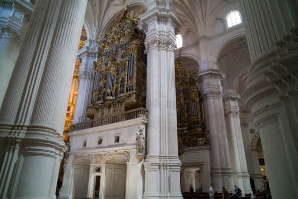 Johanna und ich spazierten nach dem Essen wieder zurück ins Tal. Ich machte jetzt die Bilder, zu denen ich auf dem Herweg keine Zeit hatte. Wir schauten uns einige Geschäfte an, durchstreiften die Einkaufsstraßen in der Altstadt. Auf der Plaza Romanilla mit Bar-Restaurants ließ ich Johanna zurück und schaute mir die Kathedrale an. Anders als die anderen Kirchen, die wir bisher gesehen hatten, ist die Kathedrale im Renaissance-Stil gehalten, luftig und hell mit klaren Strukturen. Lediglich der Altarbereich ist reich geschmückt und auch die Kapellen.