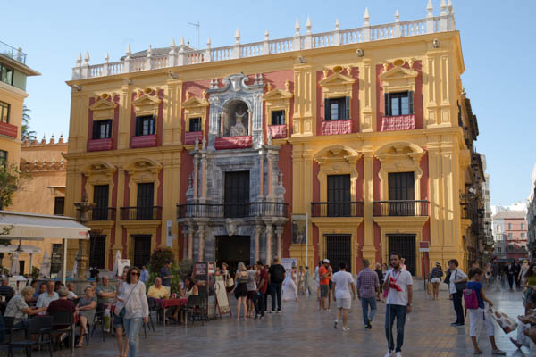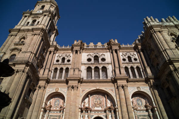 Am Nachmittag schlenderten wir dann doch Richtung Altstadt und zentraler Einkaufsstraße Calle Marqués de Larios, wo ziemlich viel los war. An der Kathedrale waren offensichtlich einige Hochzeiten im Gange. Die Front der Catedral de la Encarnación im Renaissancestil war kaum vollständig von der kleinen vorgelagerten Plaza de Obispo aus zu erfassen. Auch der verstümmelte rechte Turm wirkte irgendwie seltsam. Insgesamt macht sich der Einfluss der langen Bauzeit auf die Stilreinheit bemerkbar. Auf dem Platz vor der Kathedrale fanden sich natürlich eine Reihe kleiner gemütlicher Lokale. Allerdings nervte das Kindergeschrei. Zuvor hatten wir auf der anderen Seite der Einkaufsstraße auf der Plaza de las Flores auch ein paar Lokale entdeckt. Dort landeten wir und naschten etwas Schinken und Käse.