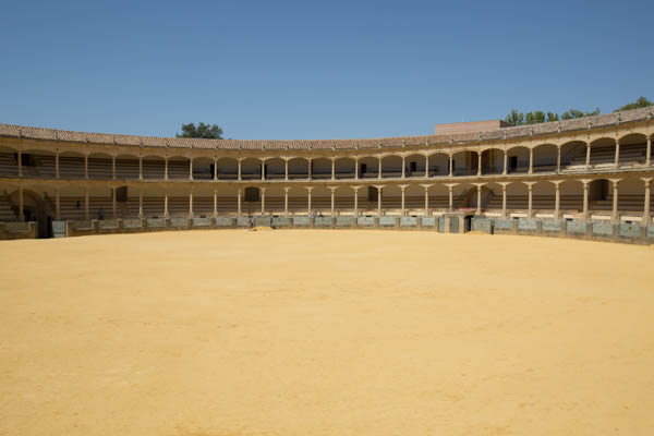 Eigentlich hatte es geheißen, wir könnten die Stierkampfarena nicht besichtigen, weil ein großes Fest mit Stierkämpfen an dem Wochenende stattfinden würde. Das war allerdings um eine Woche verschoben und wir konnten somit die große und wohl älteste Stierkampfarena Spaniens besichtigen. Stierkampf ist ja für uns inzwischen zu etwas Anstößigem geworden. Aber so wie unser Stadtführer es schaffte, den ritualisierten Kampf und die Atmosphäre darum herum zu schildern, machte es doch neugierig, wie eine solche Veranstaltung wohl ablaufen würde. Am Ende der Besichtigung verabschiedeten wir uns von unserem Stadtführer. Ich fand es wirklich klasse, wie er seine Stadt vorgestellt hat, aus innerster Überzeugung, ja Liebe.