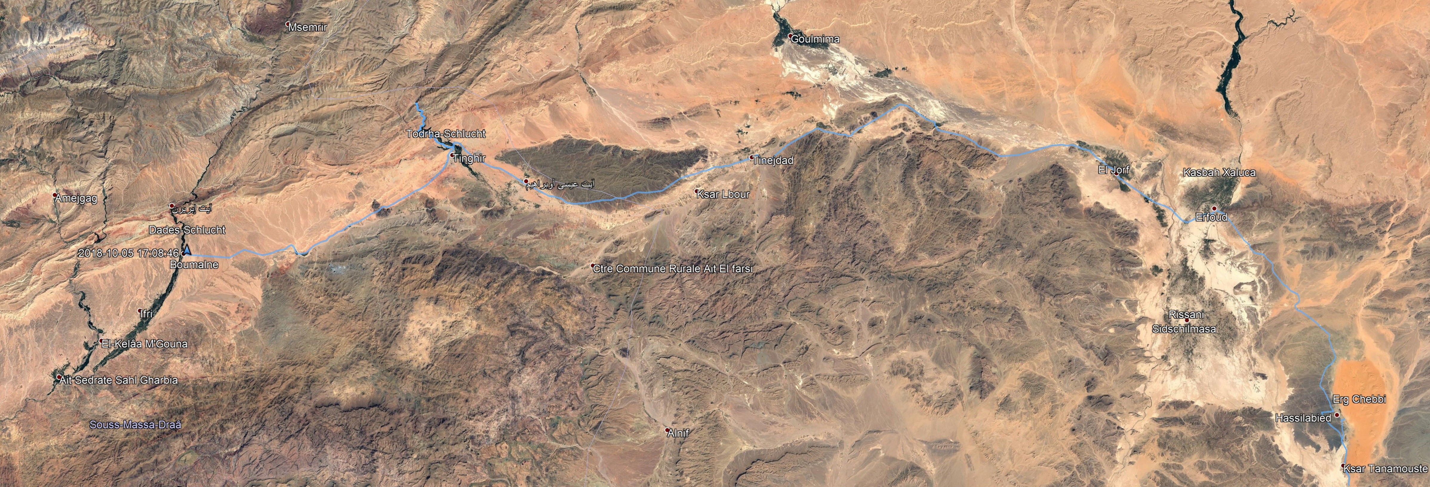 Wir fuhren wieder aus der Schlucht und setzten unseren Weg nach Westen fort. Dabei kamen wir auch durch Tenehir, die Provinzhauptstadt und ehemalige Stadt der Fremdenlegion.