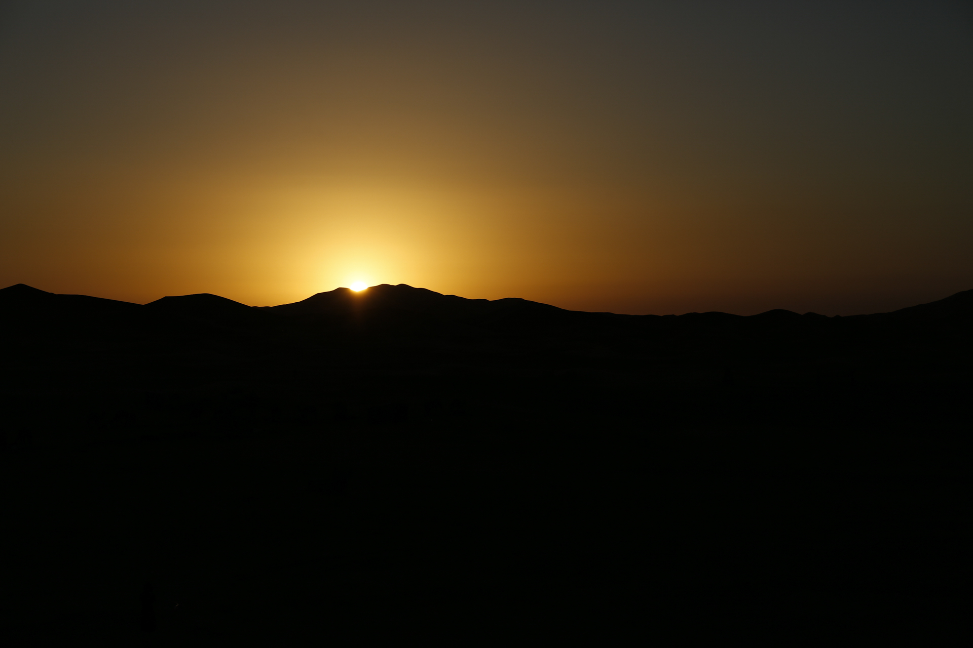 Kurz vor 7:00 Uhr fand sich bereits ein Teil der Gruppe auf der Dachterrasse des Hotels ein, um den Sonnenaufgang um 7:12 Uhr zu bewundern. Die ersten Japaner waren auch schon unten am Übergang zwischen Geröll und Sand unterwegs und einer stand natürlich mit rotem Hemd direkt in Fotografierrichtung.