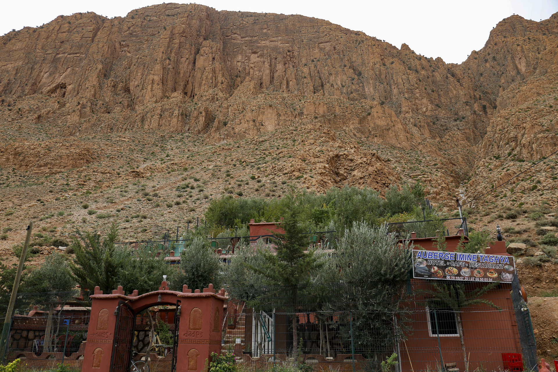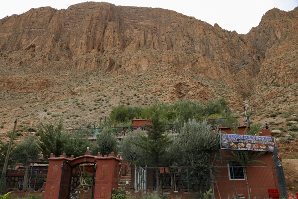 Bis zum Hotel fuhren wir auf der kargen Hochebene. Das letzte Stück zum Hotel in dem kleinen Ort Boumalne gestaltete sich noch mal schwierig, weil die Straße gerade neu gemacht wurde. Aber dann war auch das geschafft.