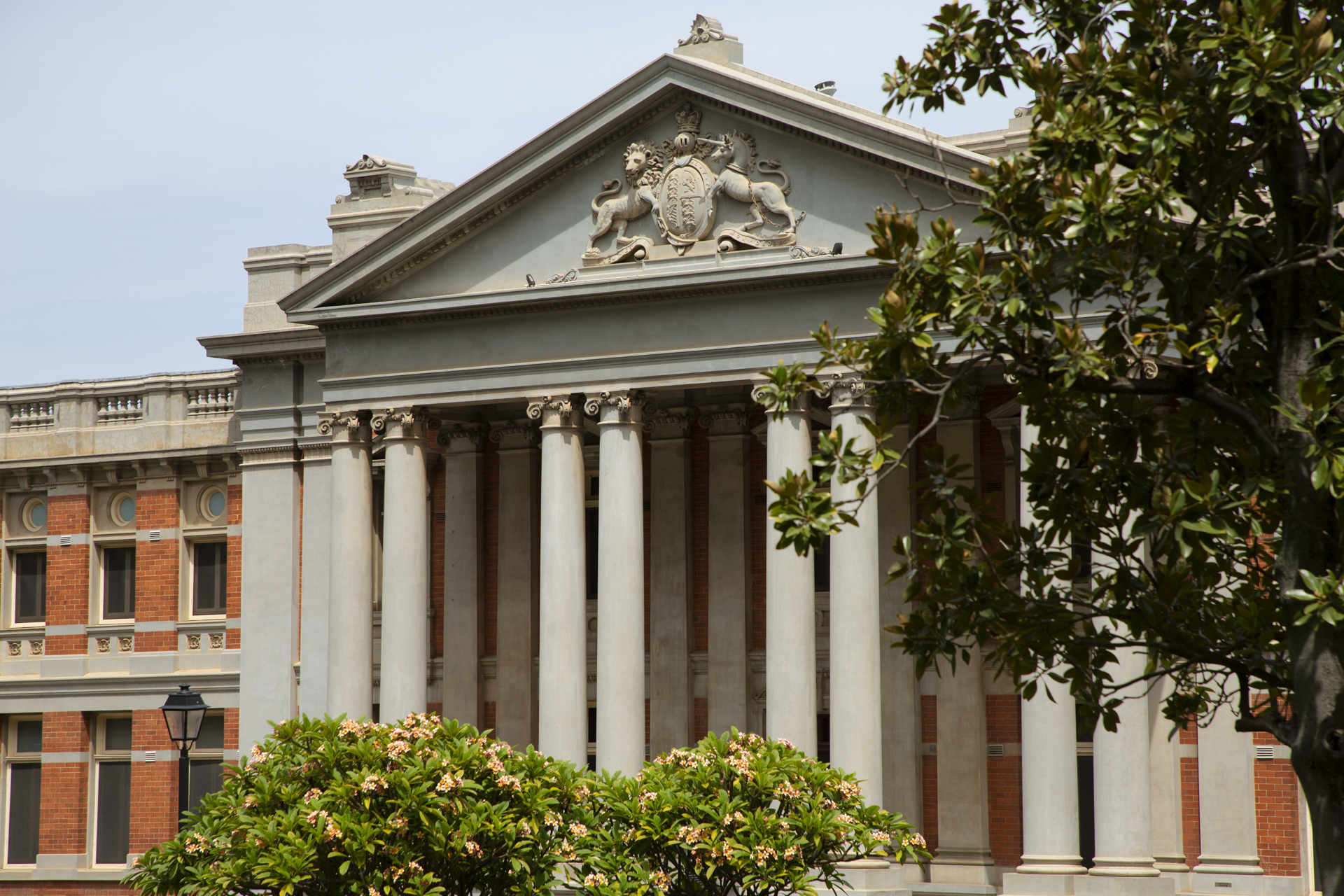 Zurück an einer großen Straßenkreuzung kauften wir erst einmal Wasser ein. Bei dem Wasserbedarf und den Preisen für Sprudel in Plastikflaschen wird das wahrscheinlich ein signifikanter Posten auf der Reiseabrechnung werden. Johanna blieb am Treffpunkt der Gruppe zurück und ich lief noch ein paar Meter bis zur Town Hall, deren Turm Wappen mit einem Schwan zieren. Der Swan River, an dem Fremantle genauso wie Perth liegt, gab das Stadtwappen vor. Am Treffpunkt fehlte zur vereinbarten Zeit ein Ehepaar. Da wir pünktlich am Hafen bei unserem Boot nach Perth sein mussten, wurde unser Reiseleiter nervös und als die beiden schließlich eintrafen mahnte und erinnerte er an die Verhaltensregeln einer Gruppenreise. Das passiert aber am Anfang immer mal, bis sich die Gruppe eingeschwungen hat.