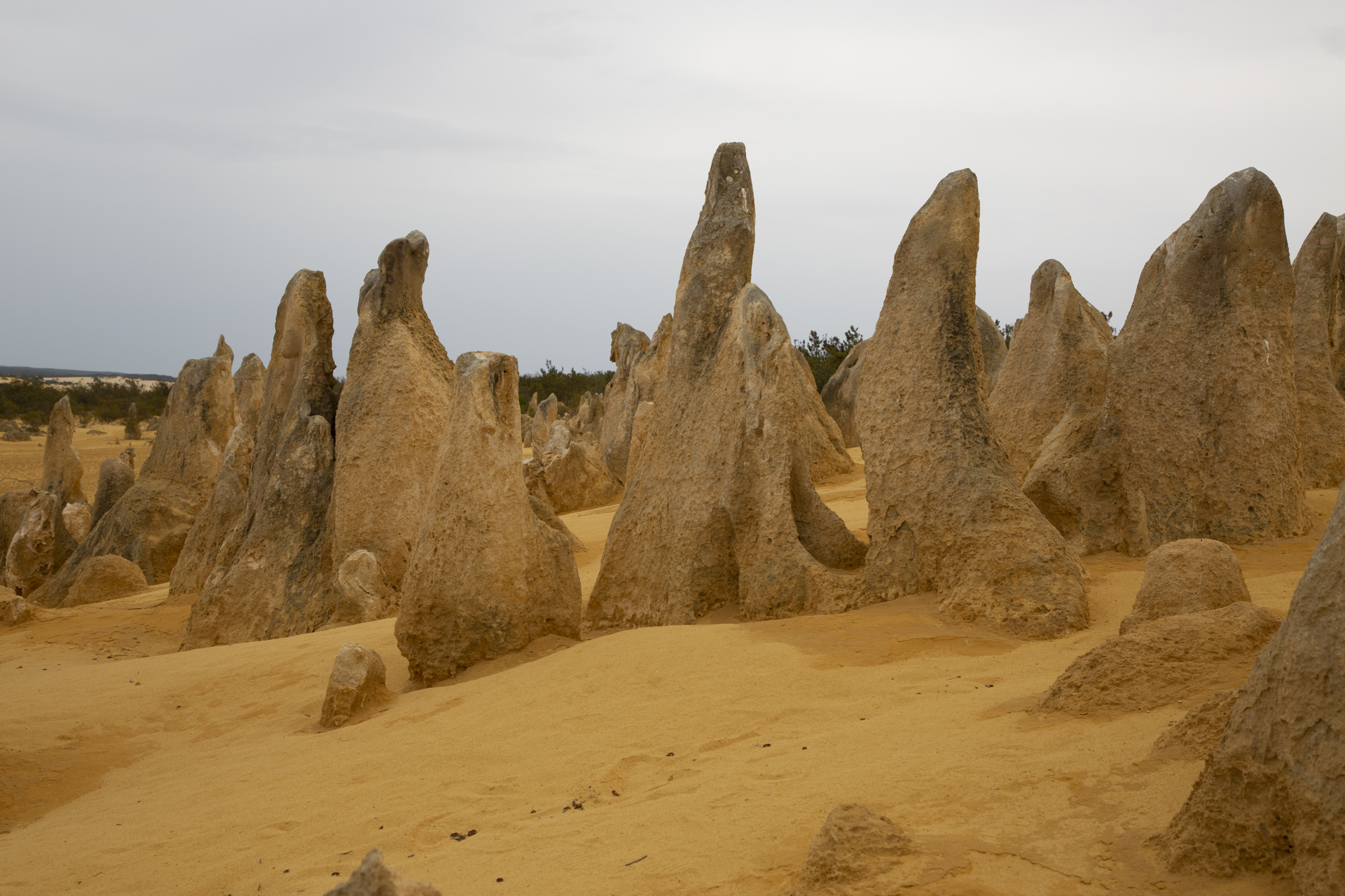 Trotz der dichten Bewölkung hatte der Himmel noch einen recht hohe Blauanteil, was für die Bilder der Pinnacles sehr zuträglich war. Das weiche Licht war wahrscheinlich sogar besser, als eine direkte Sonneneinstrahlung mit den üblichen hohen Kontrastumfängen und Schattenwürfen.