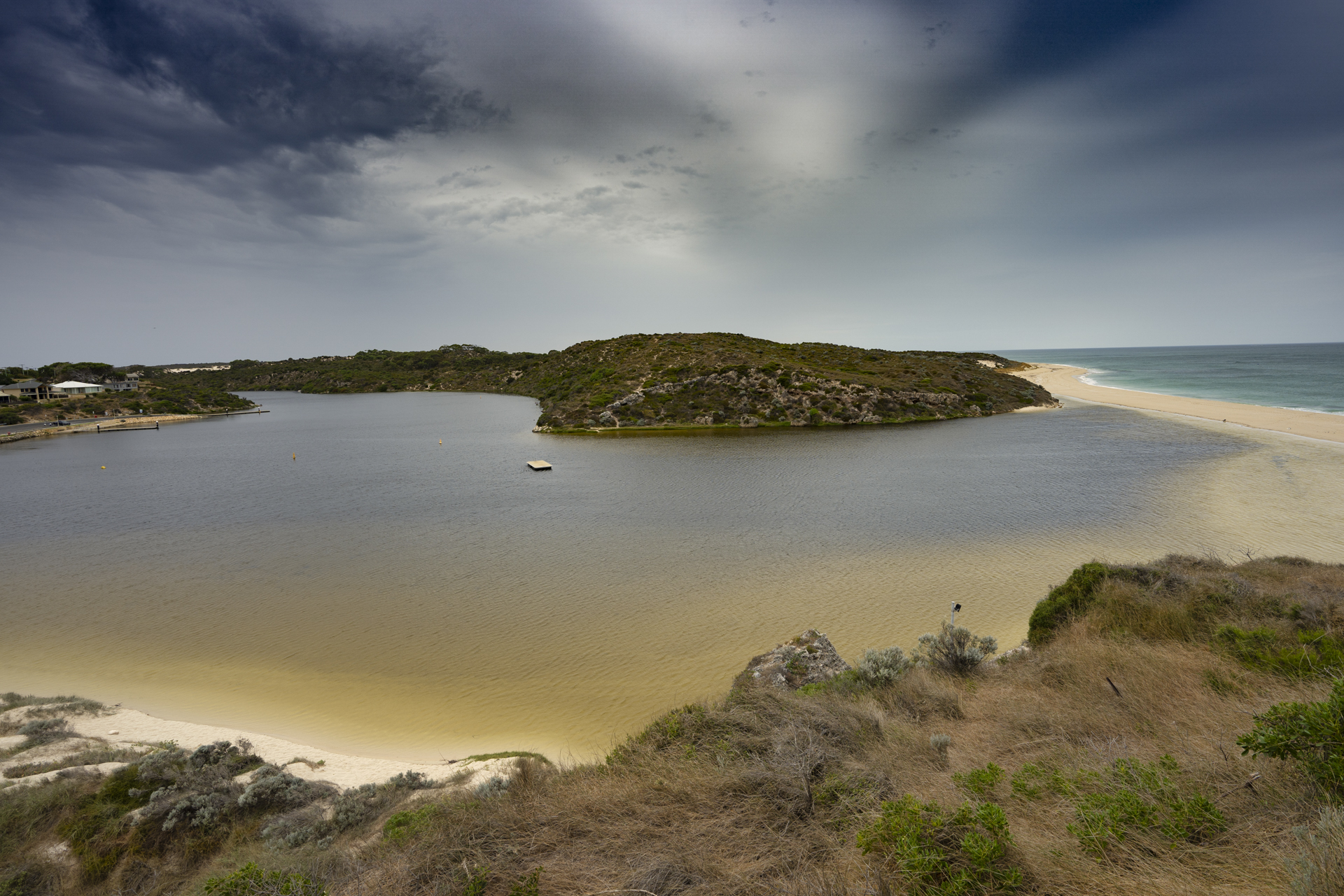 Zur Tea Time erreichten wir Guilderton. Dort mündet der Moore River ins Meer. Das wäre an sich erst mal nichts Besonderes. Hier aber verbreitert sich der Fluss kurz vor dem Meer und füllt eine Bucht aus, die von Felsen umrahmt ist. Zusätzlich trennt eine Sandbank den Fluss vom Meer. Das Wasser des Flusses sickert durch die Sandbank ins Meer. Die Sandbank wird nur manchmal durchbrochen. Dadurch entstand in der Bucht ein besonderes Ökosystem.