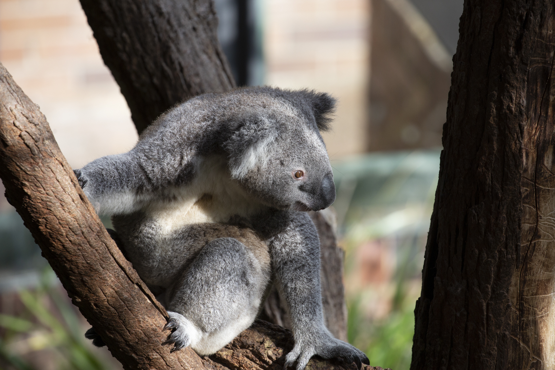 Das Koala Walkabout gleich am Anfang war ganz interessant angelegt. Rund um die Bäume mit den Koalas konnte man eine Spiralrampe hinauflaufen und damit auf Augenhöhe mit den Koalas sein. Und von denen bewegten sich tatsächlich einer oder zwei!