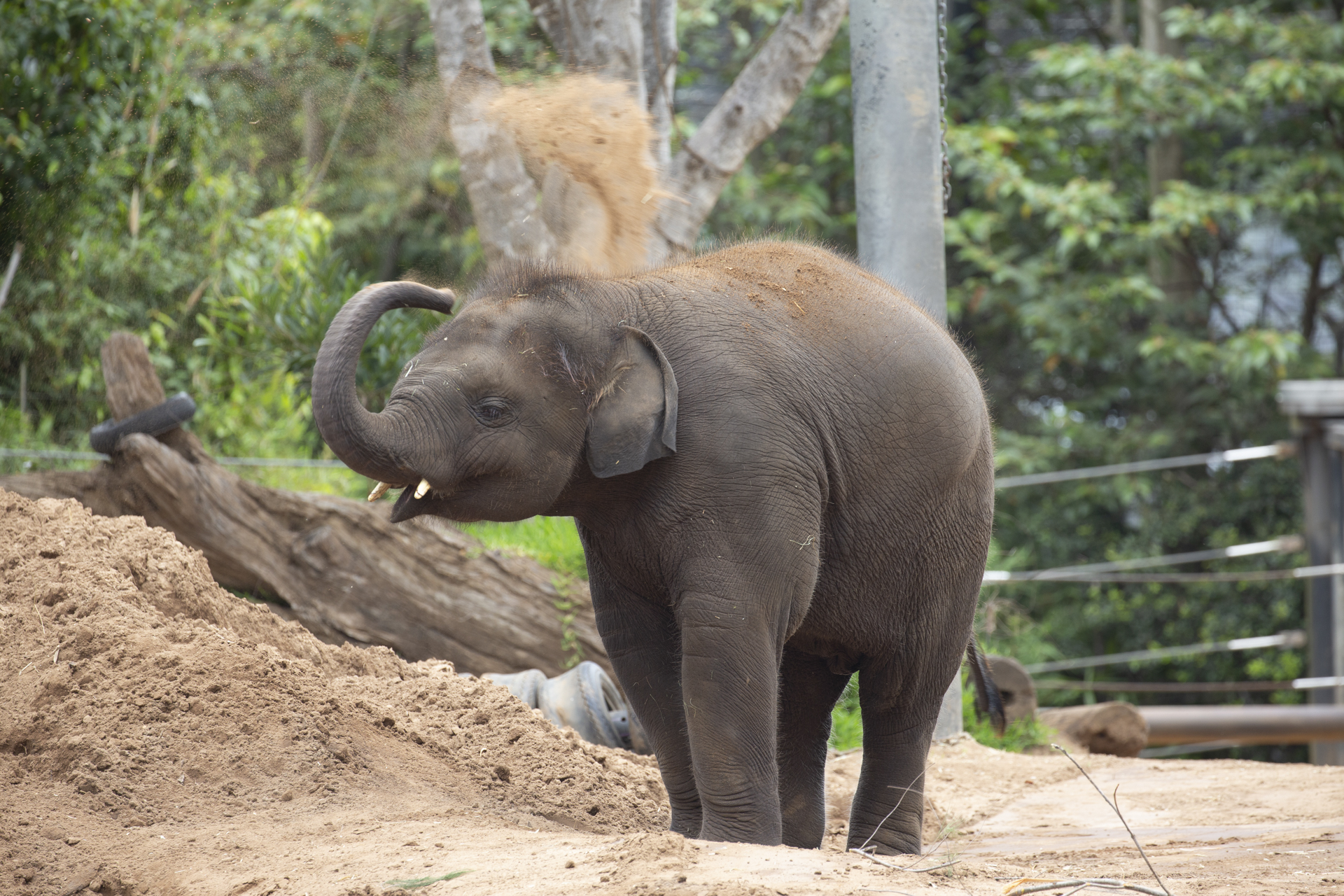 Die Familie asiatischer Elefanten im Bereich des zentralen Food Court war ganz witzig, insbesondere der Jungelefant, der sich mit den aufgehängte Reifen und Stangen abmühte.