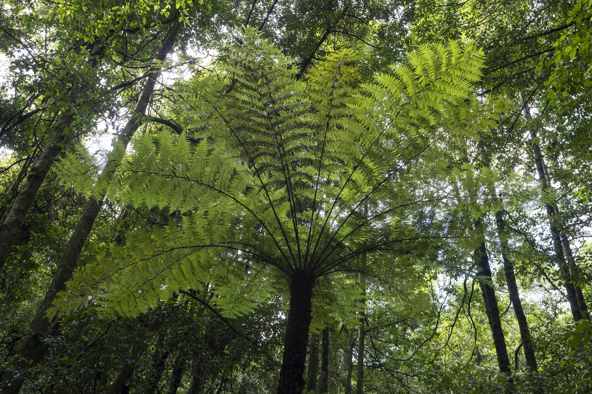 Die Scenic World erschließt ein Gelände an einem steilen Hang, an dem in früheren Zeiten Kohle abgebaut worden war. Die damalige extrem steile Standseilbahn ist längst durch eine moderne Konstruktion ersetzt, die aber nicht weniger steil ist. Irgendwie fühlte man sich wie im Bahnhof einer Achterbahn. Die ursprüngliche Sitzposition war fast liegend. Als es dann losging und die Wagen allmählich noch unten abkippten erwartete ich unwillkürlich eine Beschleunigung wie bei der Silver Star. Tatsächlich fuhr die Bahn aber im gemächlichen Tempo nach unten, wobei auch noch ein Tunnel durchquert wird. Nach etwas mehr als 400 m ist bereits Schluss. Von da aus führen verschiedene Boardwalks durch den noch recht jungen Wald am Hang hoch und runter.