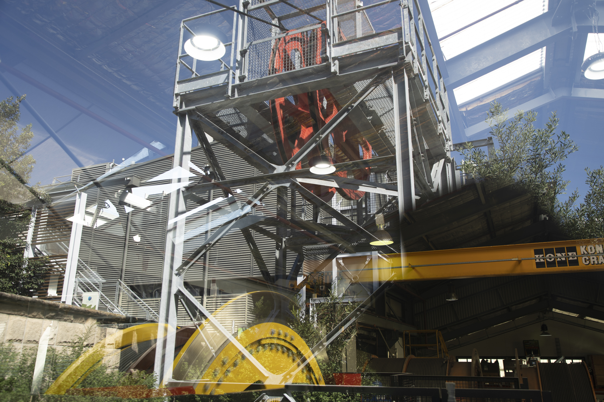 Tatsächlich waren wir die ersten, die über ein paar Rolltreppe des zugehörigen Gebäudes den Eingangsbereich am Fuß des Sydney Towers erreichten. Der 5-Minuten-4D-Film war nett, aber die vierte Dimension war irgendwie noch nicht richtig aktiv. Jedenfalls bekamen wir bei den Szenen, in denen Wasser in Richtung Zuschauer spritzte, nichts ab. Aber das Filmchen ist wohl ehr nur als Puffer bei höherem Antrag gedacht. Der Aufzug nach oben zur Aussichtsebene des Turms hat die Form eines Kreissegments. Ungewöhnlich aber klar, wenn man den geringen Durchmesser des Turmstiels bedenkt.