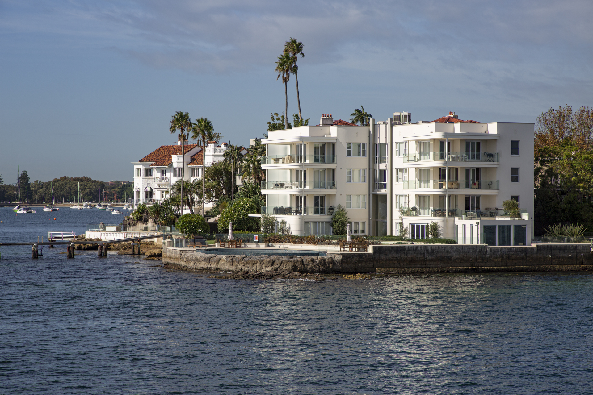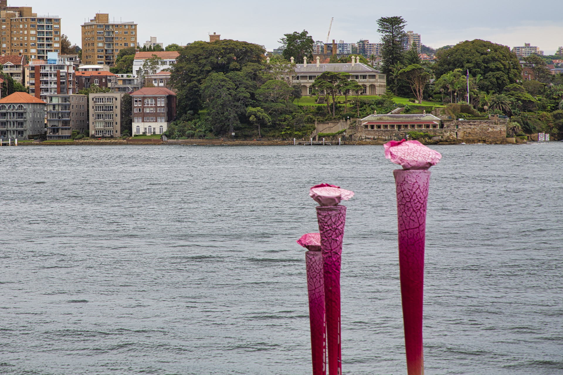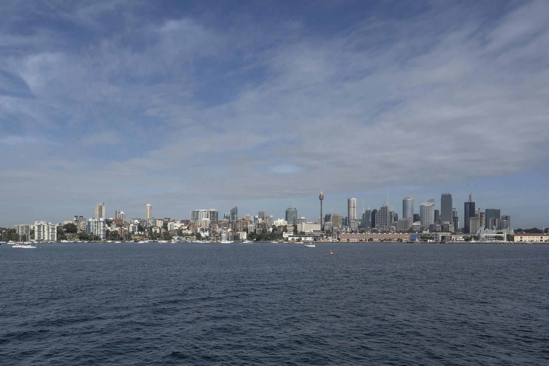 Wir fuhren zunächst auf der südlichen Seite des Hafens entlang. Die Tour Guide des Schiffes erklärte alles, jede Bucht, woher deren Namen kamen, Geschichte und Geschichtchen rund um die vielen kleinen Strände an den Buchten und auch zum Teil, wem die Immobilien an den Hängen entlang des Hafens gehören. Zum Teil konnte sie sogar die Preise nennen, die für einzelne Immobilien in jüngster Zeit aufgerufen worden waren. Beispielsweise in zwei Appartementhäusern direkt am Wasser. Jedes mit drei Stockwerken, jedes Stockwerk mit einem Zwei-Schlafzimmer-Appartement. Kaufpreis für ein Appartement lag bei 27 Mio AUD, also rund 18 Mio €!