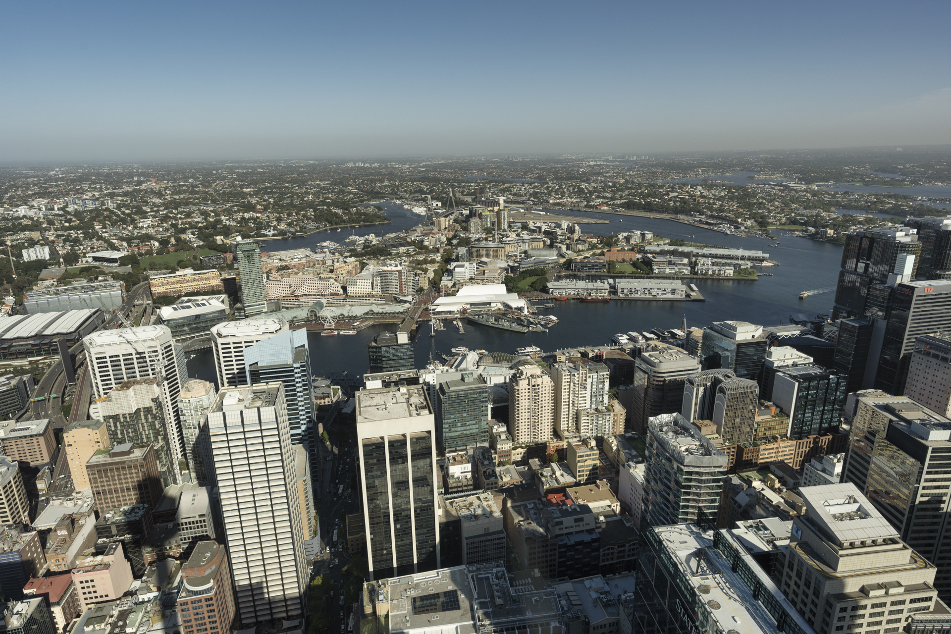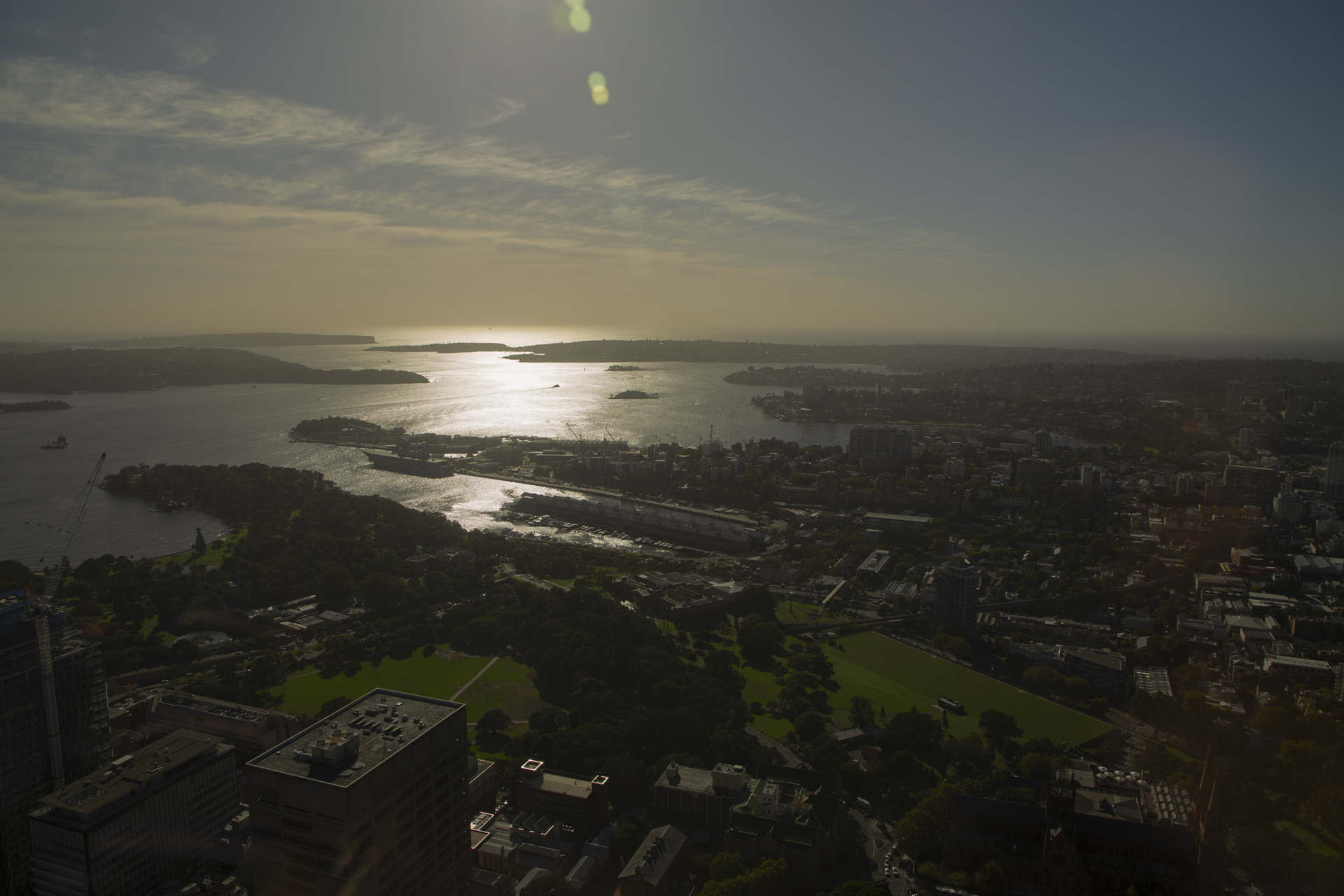 Auf 250 m liegt die Aussichtsebene, wo wir praktisch die meiste Zeit alleine waren. Zum Glück war die Luft noch ziemlich klar, so dass man einen sehr guten Rundblick über Sydney hatte.