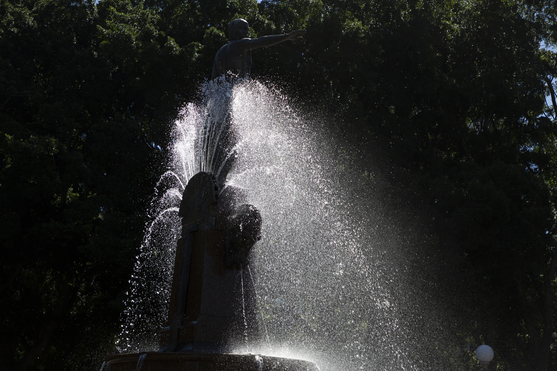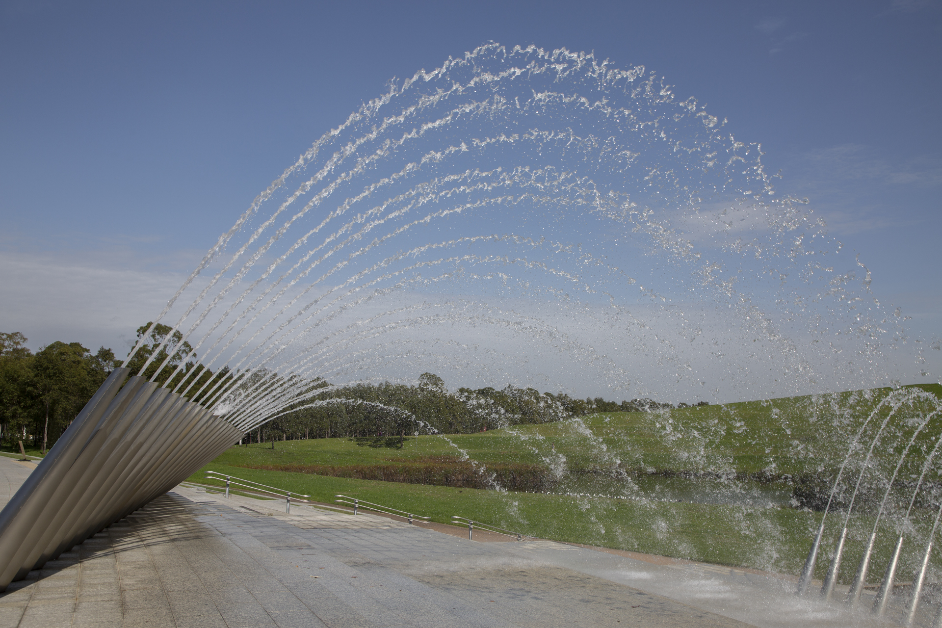 In den Außenbezirken von Sydney schauten wir uns ein Stück des Olympiageländes an. Die schöne Brunnenanlage am Beginn unseres kurzen Spaziergangs stellte, sehr zum Bedauern einiger Fotografen aus der Gruppe, kurz nach unserer Ankunft den Betrieb ein. Ich hatte da zum Glück meine Bilder schon im Kasten.