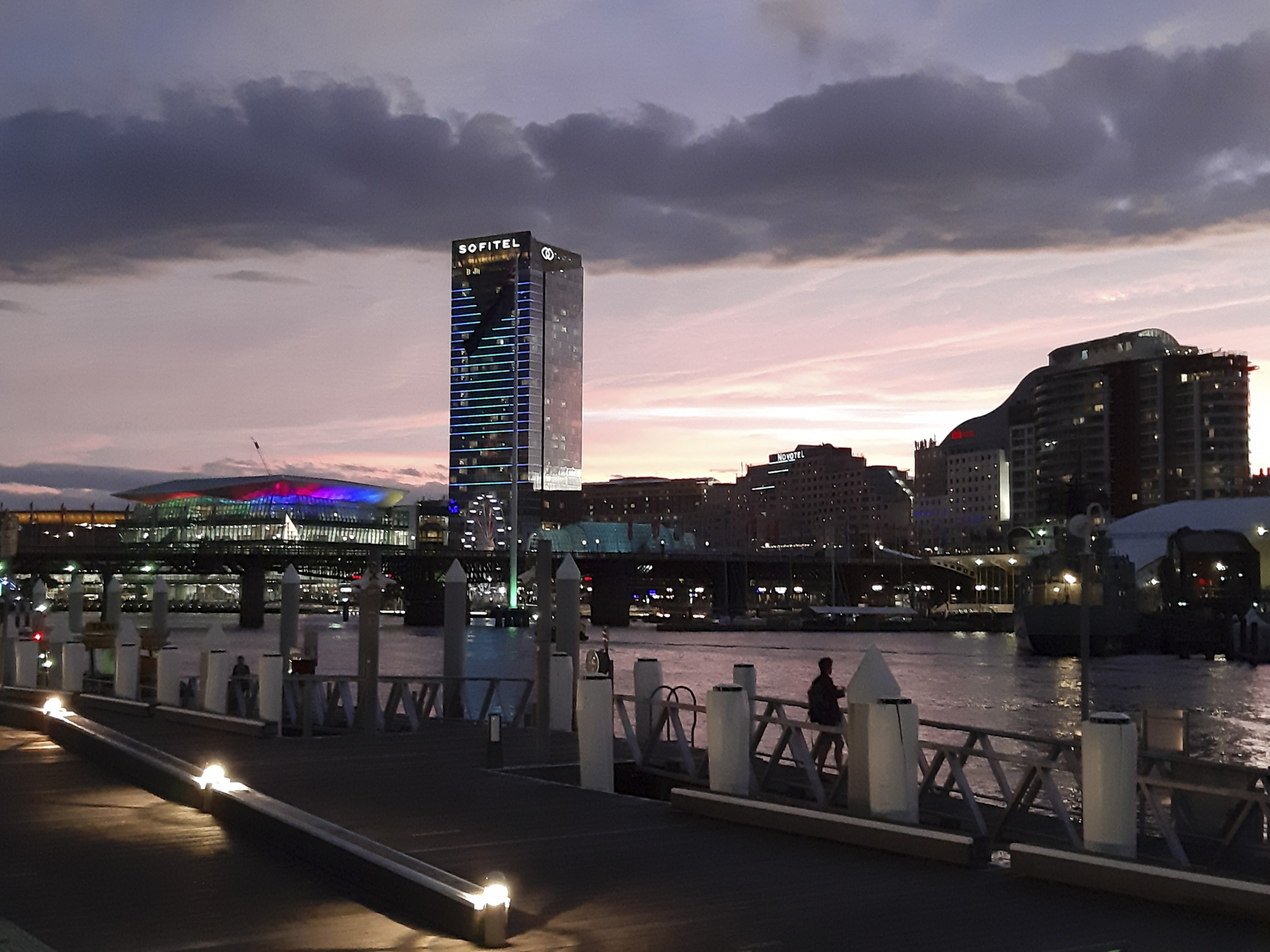 Wir tranken ein Bierchen in der Bar, wo ich gleich auch die Tickets für Fähre und Zoo am nächsten Tag online bestellte, ruhten uns etwas aus, bzw. ich schrieb Reisebericht, bevor wir nochmals zum Darling Harbour hinabstiegen.