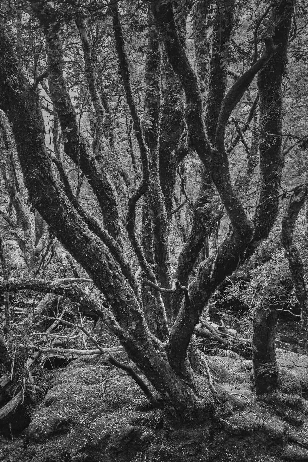 Die Strecke zum Cradle Mountain zog sich ziemlich hin. Vor uns fuhren zwei PKW, wobei der vordere übervorsichtig durch die Gegend schlich. Auf einer Geraden war es unserem Busfahrer zu bunt und er überholte beide PKWs. Danach ging es, zumindest auf den wenigen geraden Strecken, etwas zügiger voran.