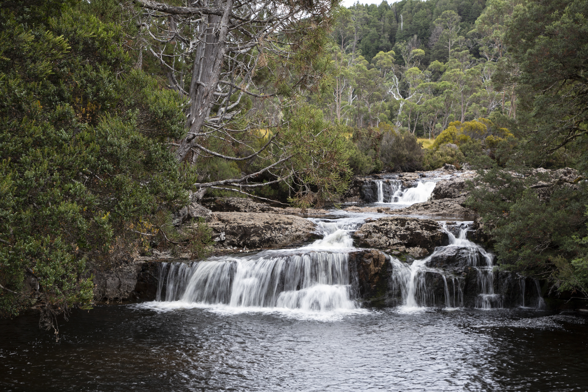 Um 15:30 Uhr versammelte sich eine stark reduzierte Truppe um unseren Reiseleiter. Wir gingen durch das Flusstal hinüber zum Informationszentrum des Nationalparks, wo das Interessantesete eigentlich ein Modell der Gegend rund um den Cradle Mountain war. Daran schloss sich einer der kurzen Walk, der Rainforrest Walk an. Höhepunkt hierbei der Wasserfall fast am Ende der Runde.