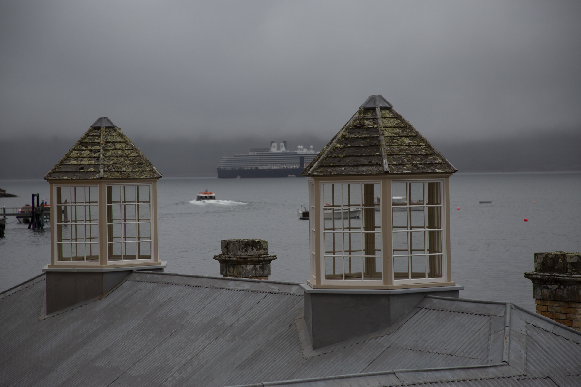 Port Arthur stellt einen richtigen touristischen Brennpunkt im sonst beschaulichen Tasmanien dar. Nicht nur zahlreiche Busse, PKWs und Wohnmobile belegten die Parkplätze. Auch ein kleineres Kreuzfahrtschiff, die Noordam, lag in der Bucht und spuckte regelmäßig Besucher an Land.