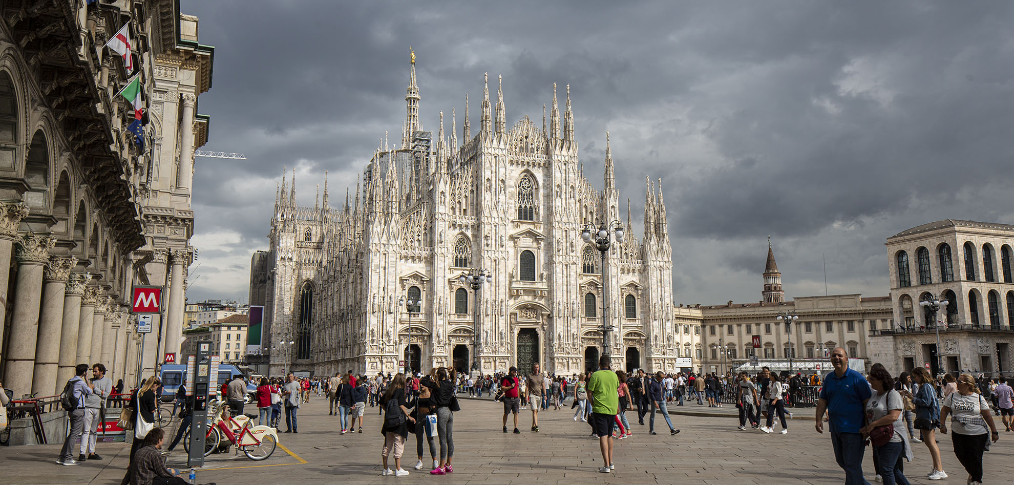 Es war schon einiges los, was aber auch nicht anders zu erwarten war. Am Eingang der Galleria prangte ein riesiges Plakat des Camparino, wo wir später unbedingt einen Campari zu uns nehmen wollten. Leider stellte sich heraus, dass sich die berühmte Bar derzeit im Umbau befand und daher geschlossen war. Wir sollten es auch während unseres restlichen Aufenthaltes in Mailand nicht schaffen, mal einen Campari zu trinken.