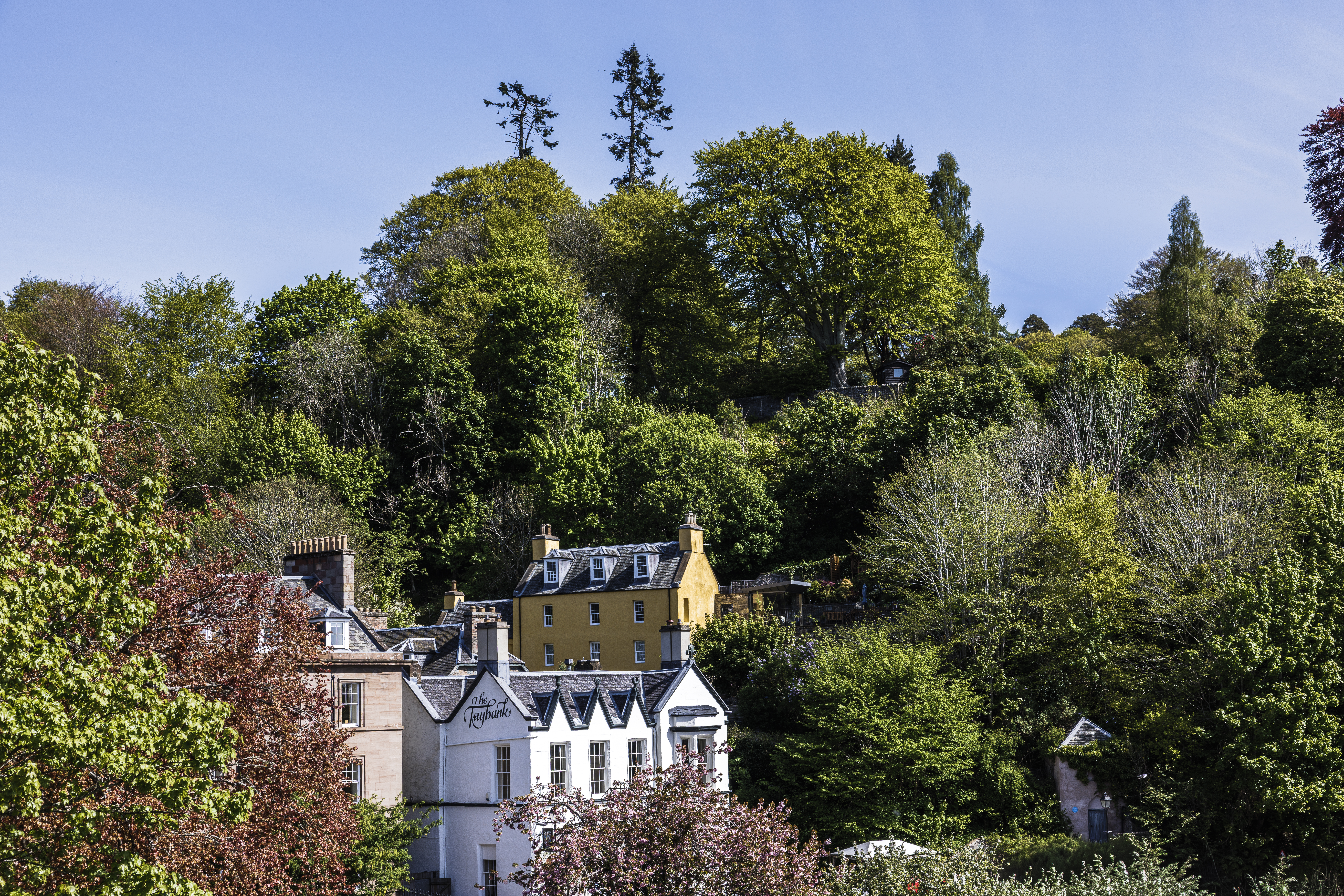 Dunkeld Häuser am Ortsrand mit Restaurant The Taybank