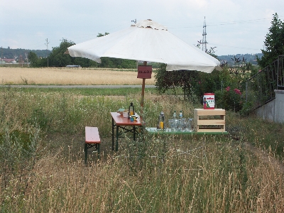 Am Samstag Nachmittag, Johanna war gerade im Sportstudio, hörte ich Geräusche, als ob jemand seinen Rasen mähen würde. Ein Blick ringsum ergab jedoch kein Ergebnis. Erst als Johanna zurück kam, lüftete sich das Geheimnis: Günther hatte inzwischen einen rechteckigen Bereich gemäht und dort seinen Sonnenschirm installiert.