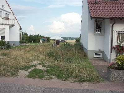 Am Montag hatten wir einen Anruf eines Elektrikers auf dem Anrufbeantworter, der vom Rohbauunternehmer mit dem Anschluß des Baustroms beauftragt war. Mit ihm vereinbarte ich dann einen Termin am Dienstag Mittag. Ich setzte mich also im Büro ab, um den Elektriker zu treffen. Gleichzeitig fuhr ich voller Erwartung nach Hause, die Baugrube vorzufinden. Allerdings lag das Grundstück nach wie vor unberührt da. Der Elektriker inspizierte die Möglichkeiten, den Baustrom bei uns abzugreifen und meinte dann, daß er noch einige Fragen abklären müsse. Auch am Dienstag und Mittwoch Abend war das Grundstück unberührt. Am Mittwoch hatte ich noch einen Termin bei Architekt Höfle, um einige Punkte zu klären, die der Statiker angemerkt hatte. Herr Höfle versicherte mir, kaum hatte ich die Büroräume betreten, daß es nun definitiv am Donnerstag losginge. << Besprechung der Planungspunkte wird nachgereicht >>
