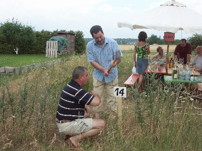 Als später dann ein Gewitter aufzog, trugen wir Tische, Bänke und Getränke kurzerhand in unsere Garage und feierten dort weiter. So klang bald nach Mitternacht die erste Feier im Rahmen des Hausbaus aus. Jetzt konnten die Bagger endlich kommen.