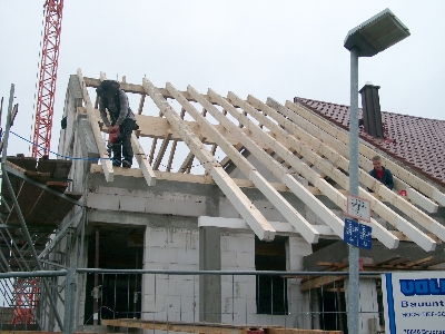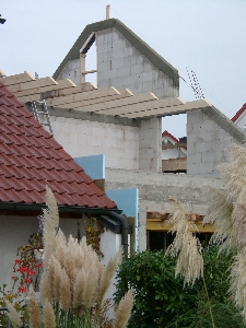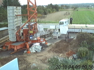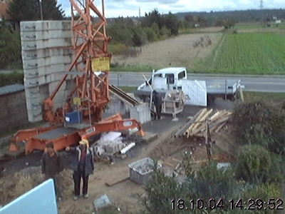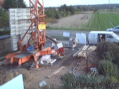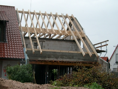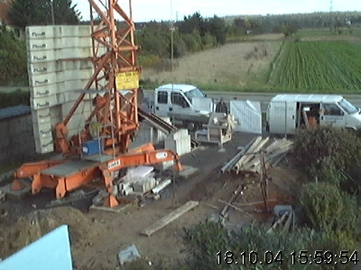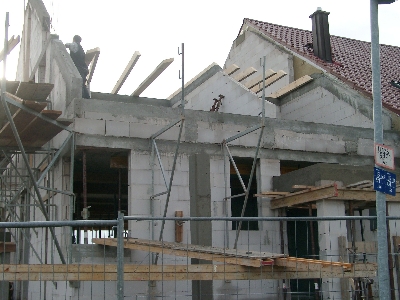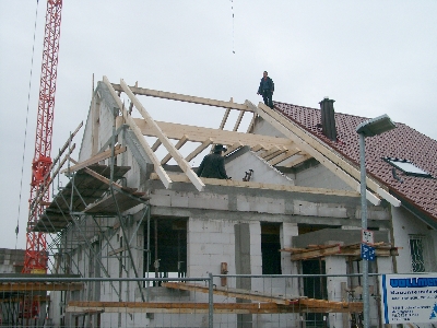 Zwischen dem 17. und dem 24. Oktober war ich beruflich wieder in China unterwegs, Johanna in ihrem Projekt. So konnten wir in der Zeit nur über unsere Webcam beobachten, was sich an der Baustelle tat. Allerdings galt es noch eine wichtige Entscheidung rund um die Welt zu treffen. Die Tonziegeln, die wir im Sonderangebot gefunden hatten, paßten nicht. Normale Tonziegeln wären über 3000,- Euro teurer geworden. Über die im Internet verfügbaren Informationen entschieden wir uns dann für die Braas-Betondachsteine mit Staroberfläche in Kupferrot. Bei den Innenrollos für die Dachflächenfenster verzichteten wir aufgrund der Kosten auf den Voreinbau. Lediglich das Steuergerät bestellten wir.