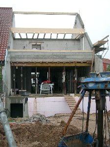 Die beiden Mauern an den Treppenabgängen waren weg, also auch die Brüstungsmauer im Keller. Die fehlenden Wände im Keller waren fertig.