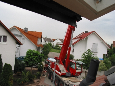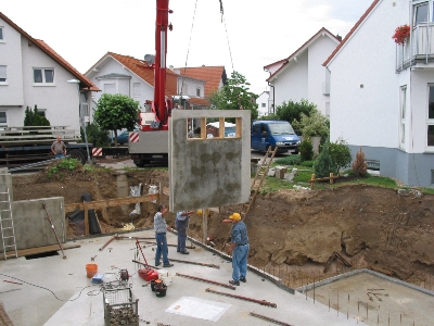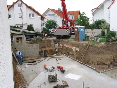 Johanna rief mich am Donnerstag morgen an und erzählte, daß der Sperlingweg vollgestellt sei mit LKWs und einem Autokran: Der Keller kam.