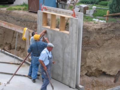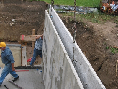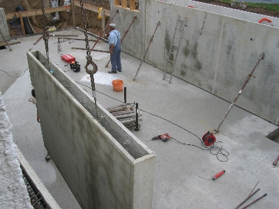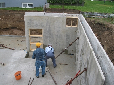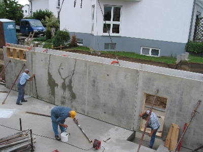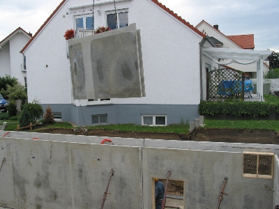 | Eine Wand des Garagenkellers