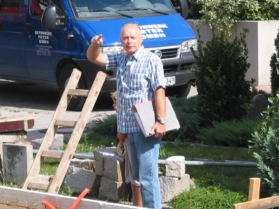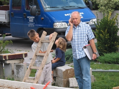 Im Laufe der folgenden Woche erfuhren wir von Herrn Höfle, daß der für den Bau vorgesehene Polier seinen Heimaturlaub in der Türkei um eine Woche verlängert hätte. Es sollte dann in der Woche vom 30. August weitergehen. Als ich allerdings am Dienstag den 31. August abends aus Helsinki zurück kam hatte sich noch immer nichts getan. Ein Anruf am nächsten Tag ergab, daß der Polier wohl beschlossen hatte, in Rente zu gehen. Nun müßte ein neuer Polier bestimmt werden, Aber am Donnerstag sollte das Material angeliefert werden und am Freitag dann mit verstärkter Mannschaft weitergehen.