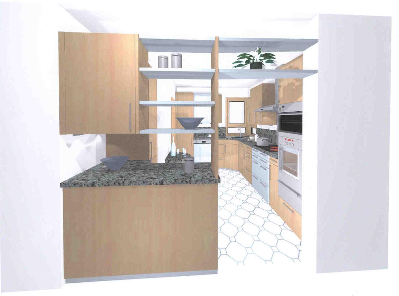 Dies alles konnten wir bereits in die Planungen aufnehmen, so daß meine am Computer erstellten Pläne bereits eine gute Vorlage für die Diskussion mit den Küchenbauern darstellte.