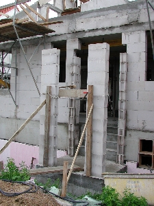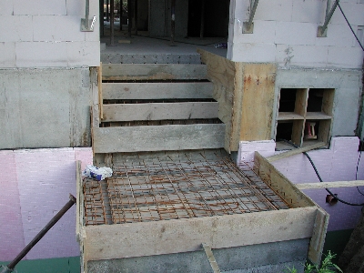 | Die Hauseingangstreppe nimmt Gestalt an | |