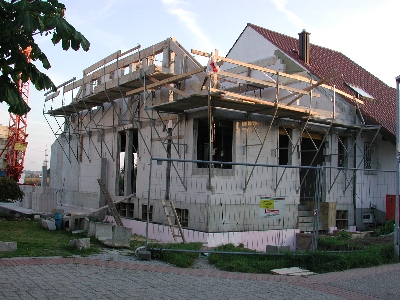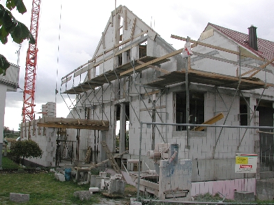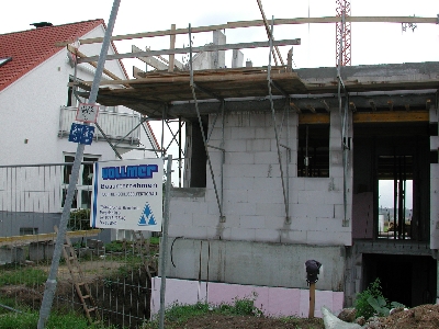 Den Termin für das Richtfest legten wir nun auf den 29.10. fest. Wie wir vermutet hatten, liegt der Bau etwa 4 Wochen hinter dem ursprünglichen Zeitplan. Herr Höfle meinte, daß er damit den Estrich nicht mehr vor der Weihnachtspause in das Haus bekommt. Das führt zu einem neuen Fertigstellungstermin Ende März.