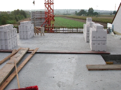 Die Kalksandsteine für die Mauern auf dieser Ebene waren bereits am Freitag hier oben abgesetzt worden.