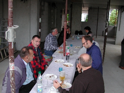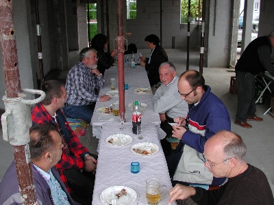 Bereits während des Kongresses in Aachen hatte ich die wichtigsten Bestandteile für das Richtfest vorbestellt. Am Abend vorher sammelte ich bei Fam. Lang und Richter einige Biergarnituren zusammen.