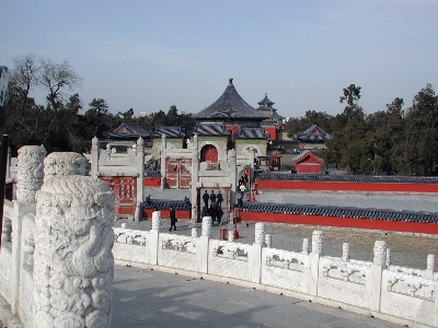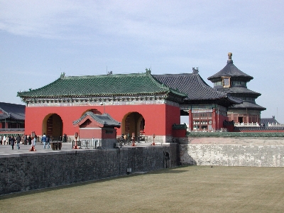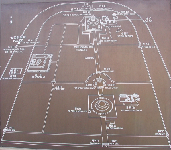 Der Himmelstempel entstand zeitgleich mit dem Kaiserpalast. Im umgebenden Park wurden Tiere für die Opferzeremonien aufgezogen. In ihrer reichen Symbolik ist die Altaranlage unübertroffen. Der inzwischen etwas beschnittene Grundriss symbolisiert im südlichen Quadrat die Vorstellung von der Erde und in der nördlichen Abrundung die Himmelskuppel. Die Farbe Blau und runde Formen stehen für den Himmel.